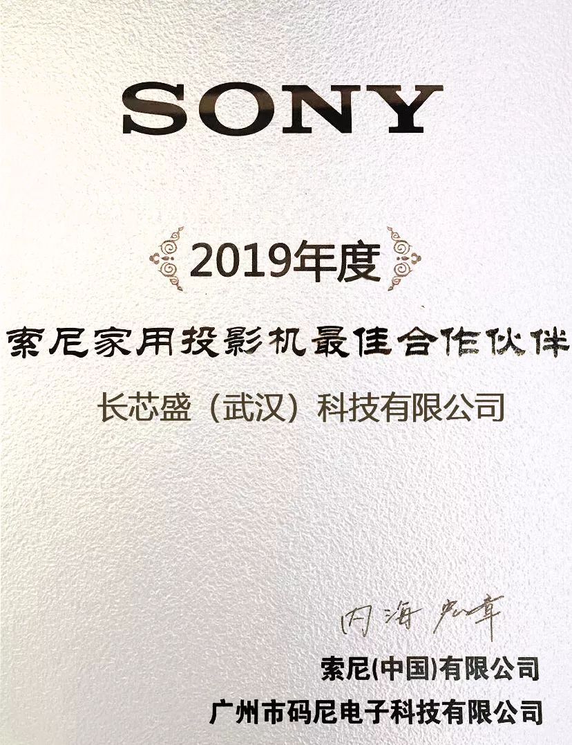 2019年12月,長芯盛公司榮獲“索尼家用投影機最佳合作伙伴”獎。索尼公司是全球家用影音行業的領軍企業,此次獲獎充分體現其對長芯盛的高度認可。