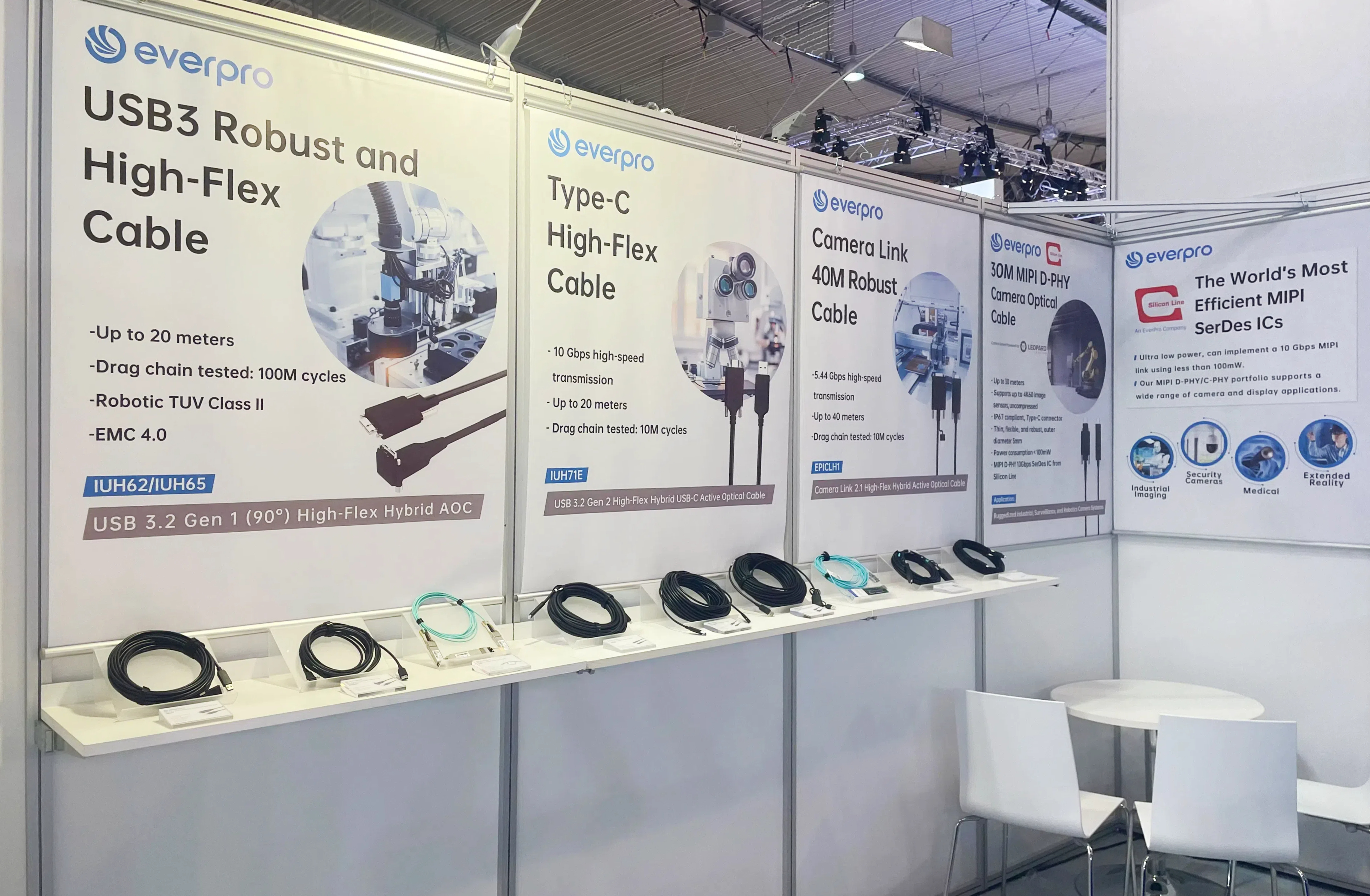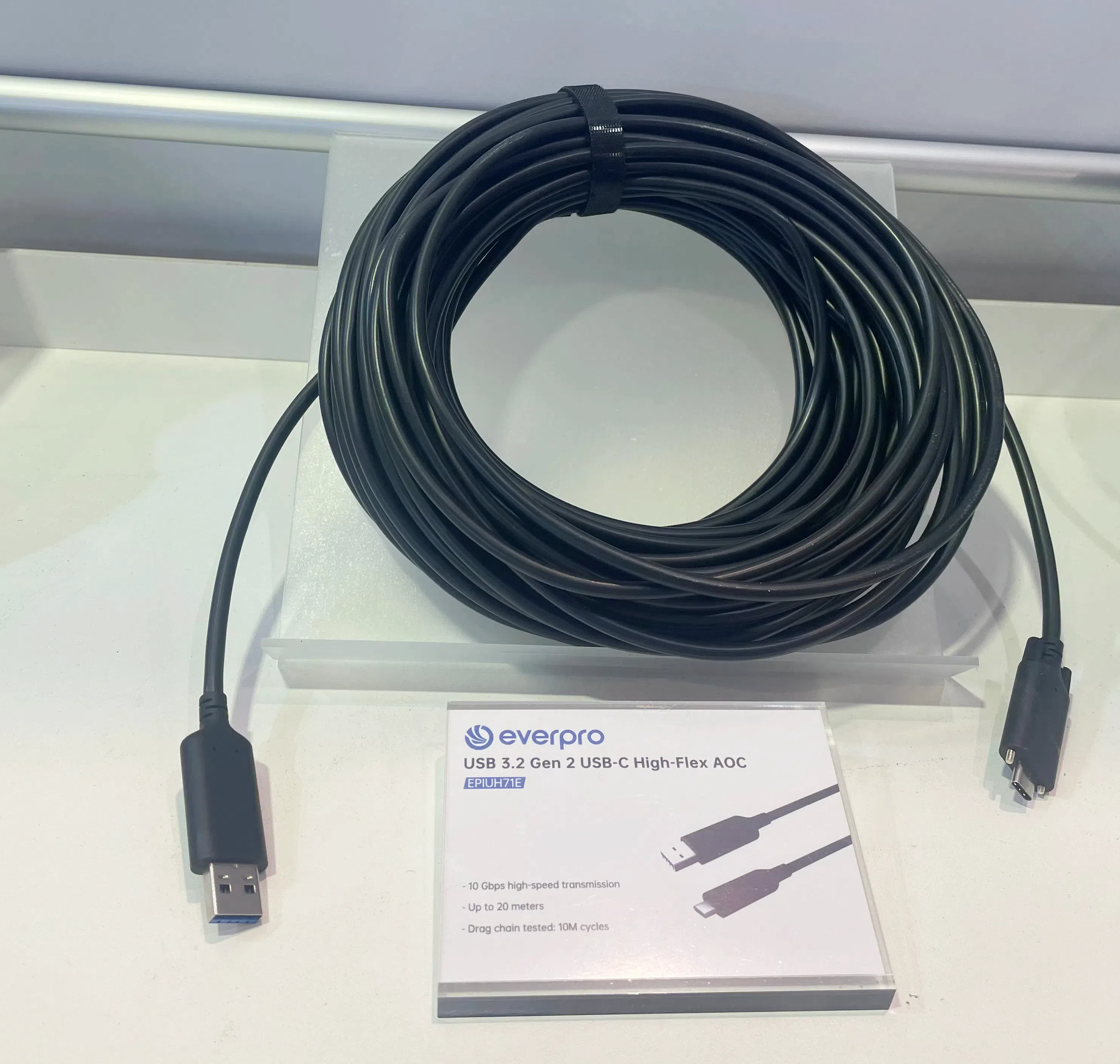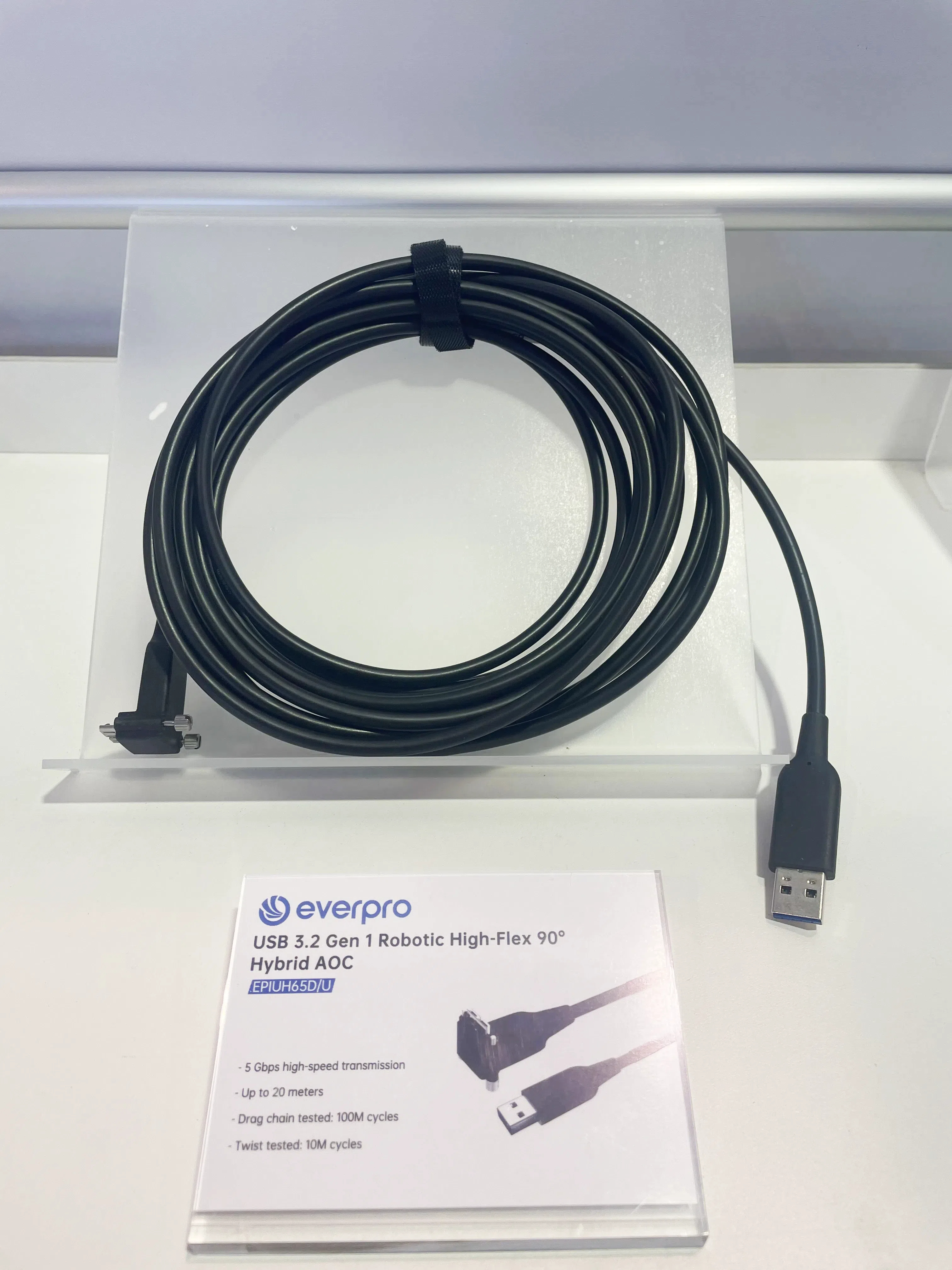 長芯盛展出了全球首款USB-MicroB高柔AOC、10G USB-C高柔AOC、Camera Link 40米高柔AOC等產(chǎn)品,專為機器視覺領(lǐng)域量身設(shè)計,通過了超1億次的拖鏈測試。這些線纜廣泛應(yīng)用于SMT、鋰電、面板等產(chǎn)品的制造與檢測。