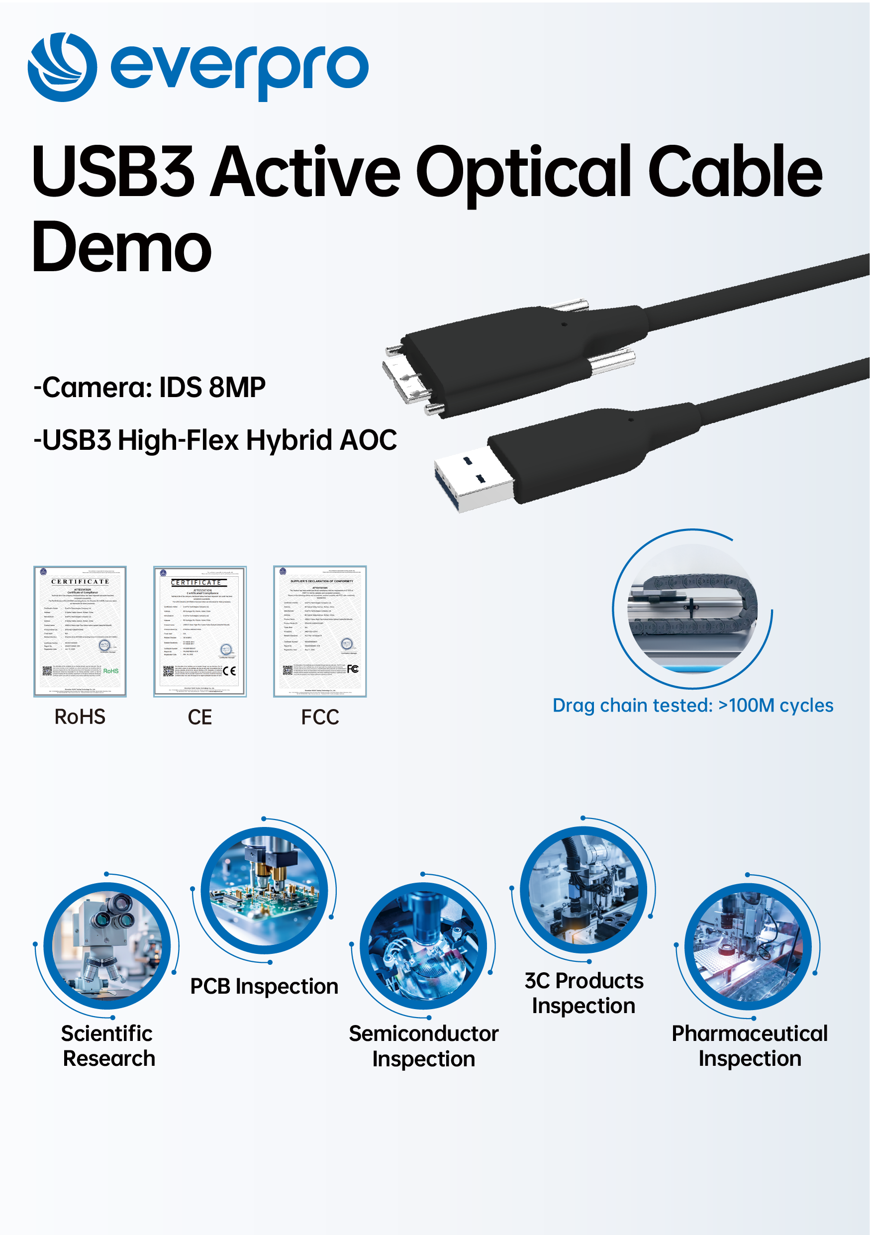 長芯盛為客戶提供從IC設(shè)計、模組設(shè)計到AOC成品生產(chǎn)的一站式服務(wù)。其AOC產(chǎn)品采用獨家特種抗彎光纖,彎曲半徑僅2mm;高柔AOC拖鏈測試次數(shù)超1億次,成為機器視覺領(lǐng)域首選。Camera Link與MIPI AOC分別突破40米與30米傳輸界限,打破了工業(yè)應(yīng)用中傳感器與控制設(shè)備間的距離限制。